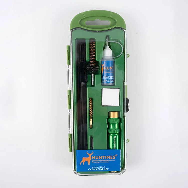 Aliuminio lydinys 5. 56MM 223 Cal Pistoletų valymo rinkinyje yra daugybė įrankių, skirtų valyti 5. 56mm/. 223 kalibro pistoletai, tokie kaip valymo šepečiai, valymo strypai, valymo pleistrai ir kt. Šie įrankiai gali kruopščiai pašalinti parako likučius, nešvarumus ir riebalus ginklo viduje, kad būtų užtikrintas pistoleto tikslumas ir patikimumas.